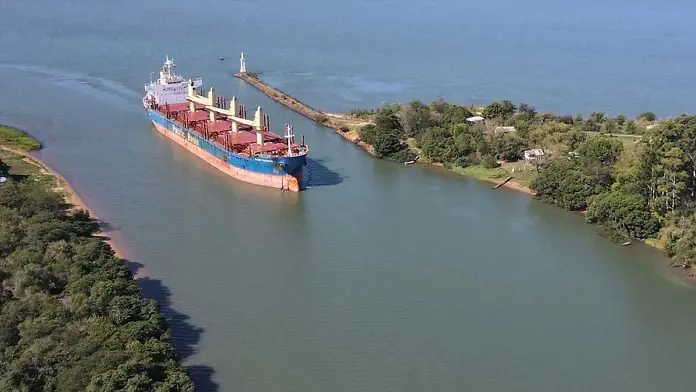 Luego de realizar las tareas de embarque en Concepción del Uruguay, este carguero completará sus bodegas en el puerto de Montevideo, para zarpar desde allí a su destino final en el puerto de Kandla, India.