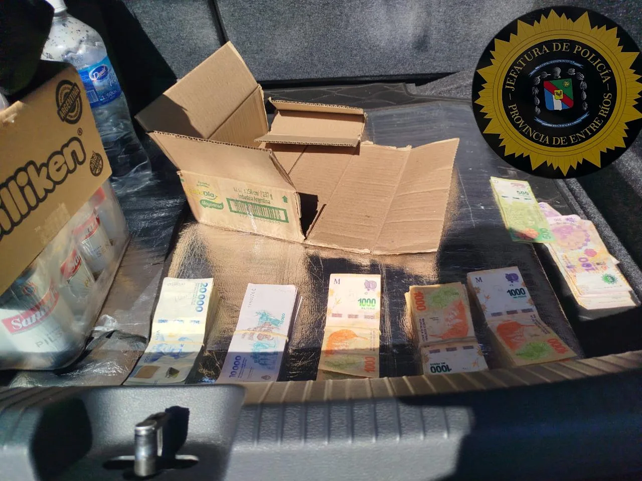 Con la información recabada, los efectivos solicitaron un mandamiento judicial para allanar el hotel donde se alojaban los sospechosos, así como también proceder con la requisa de sus pertenencias y el vehículo. En el procedimiento, se logró recuperar una suma significativa de dinero —más de $3.050.000—, que fue acreditada como parte de lo denunciado por el comerciante. Además, se incautó documentación relacionada con el caso.
