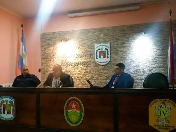 En la tarde de hoy, el Salón de Conferencias «Oficial Inspector Héctor Ramón Aguet» de la Jefatura Departamental Uruguay fue el escenario de la segunda capacitación en Proceso Penal y Delitos Federales, organizada por la Dirección Toxicología de la Policía de Entre Ríos. La jornada estuvo a cargo del Crio. General Alexis Rotundo y contó con la participación de los doctores Lucas Edgardo Claret y José María Barraza, del Juzgado Federal, así como la presencia del Jefe de la Jefatura Dtal Uruguay, Crio. Mayor Esteban Allegrini.