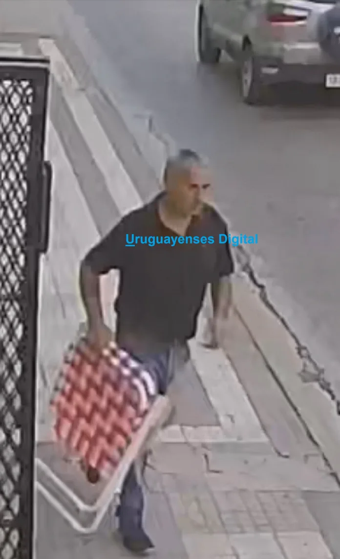 Al percatarse de que nadie ya pasaba, aprovechó y desató la piola de uno de las reposeras exhibidas afuera, logrando su cometido, robándola y saliendo de prisa.