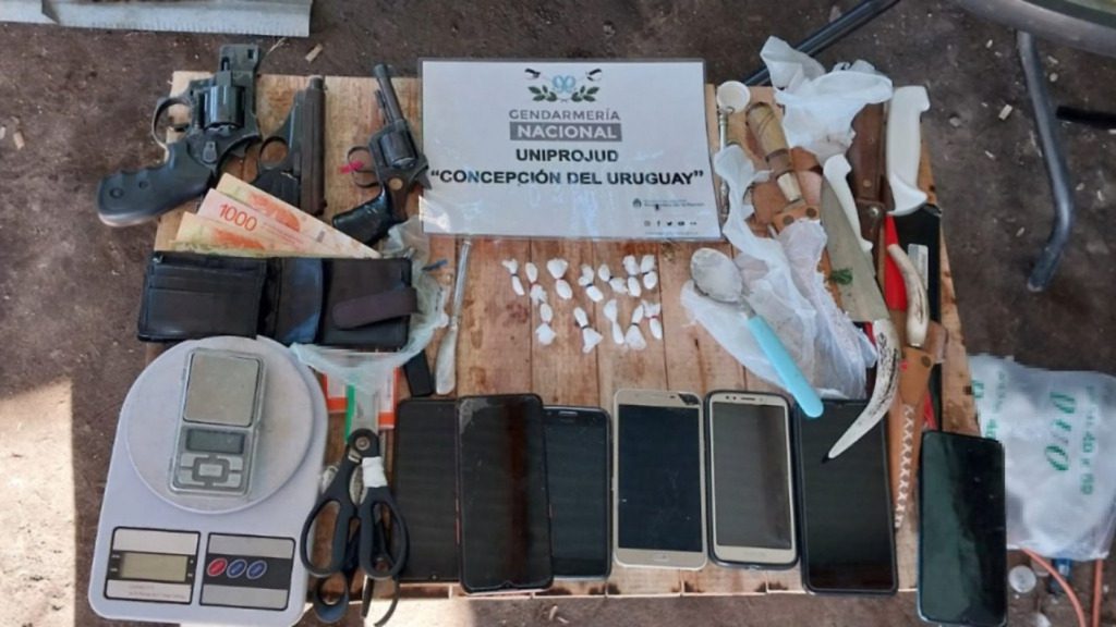 Además, el personal de la Fuerza decomisó dosis de cocaína, tres armas de fuego, municiones, balanzas digitales, dinero en efectivo, teléfonos celulares como así también elementos de corte y fraccionamiento.