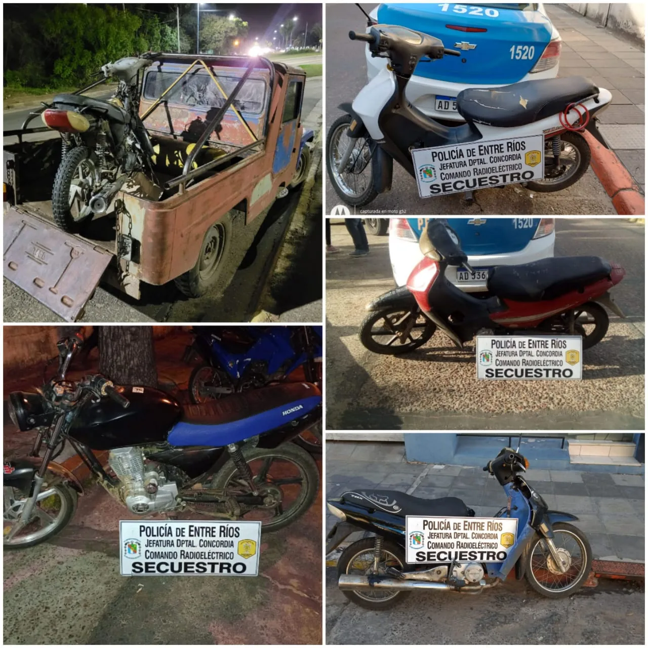 Comando Radioeléctrico siendo las 15.00hs entre sus calles Carriego y Moreno, se logra secuestrar y recuperar una motocicleta Corven Energy, la cual presentaba pedido de secuestro de Comisaria 2da de esta ciudad.