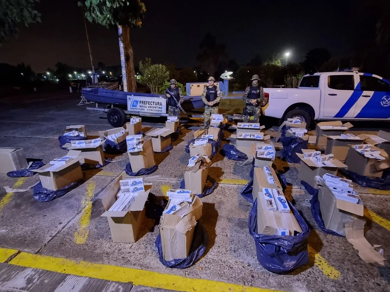 Efectivos de la Prefectura Naval Argentina incautaron un cargamento de 20.000 atados de cigarrillos en un procedimiento realizado en la ciudad entrerriana de Concordia.