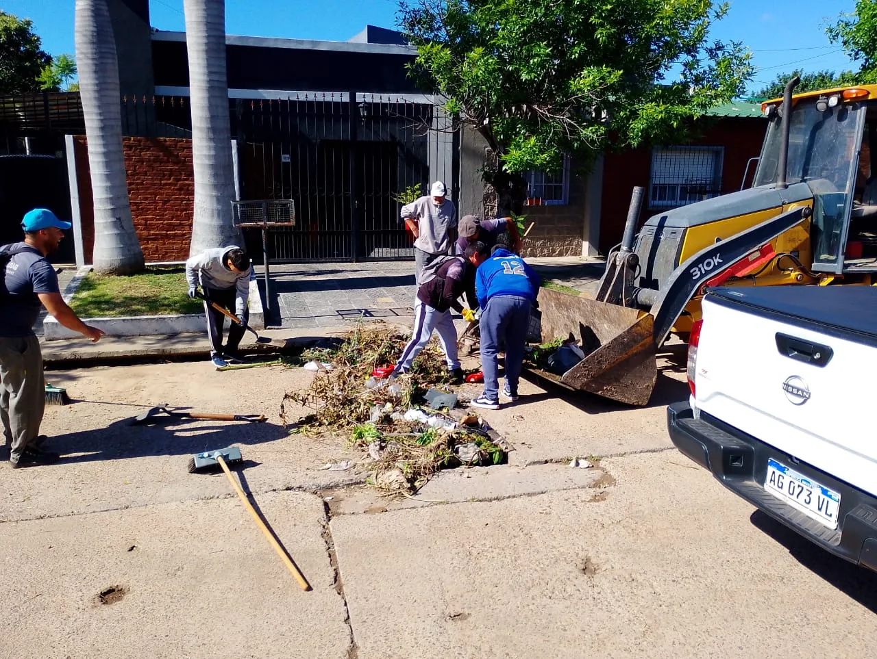 Este lunes se hizo una limpieza especial de rejas y desagües pluviales, especialmente en las ubicadas en barrio Rocamora, en calle Estrada entre 11 del Oeste y Díaz Vélez.