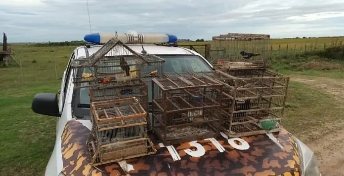 En operativo vehicular realizado por personal de la Brigada de Prevención Delitos Rurales Gualeguaychú, este Miércoles por la tarde en Costa Uruguay sur, más precisamente sobre el ripio de la ex Ruta N°42, personal policial detienen la marcha de una camioneta Toyota Hilux, la cual ante el control los uniformados observan en la caja del vehículo varias jaulas con distintas aves, entre ellas reina mora, chiviro verde, y boyero, los cuales eran utilizado como llamadores para la caza de más aves, razón por la cual se confecciono acta de infracción a la Ley Provincial de Caza Nº 4841/71; procediendo a liberar en el lugar las aves y la destrucción de las jaulas.-
