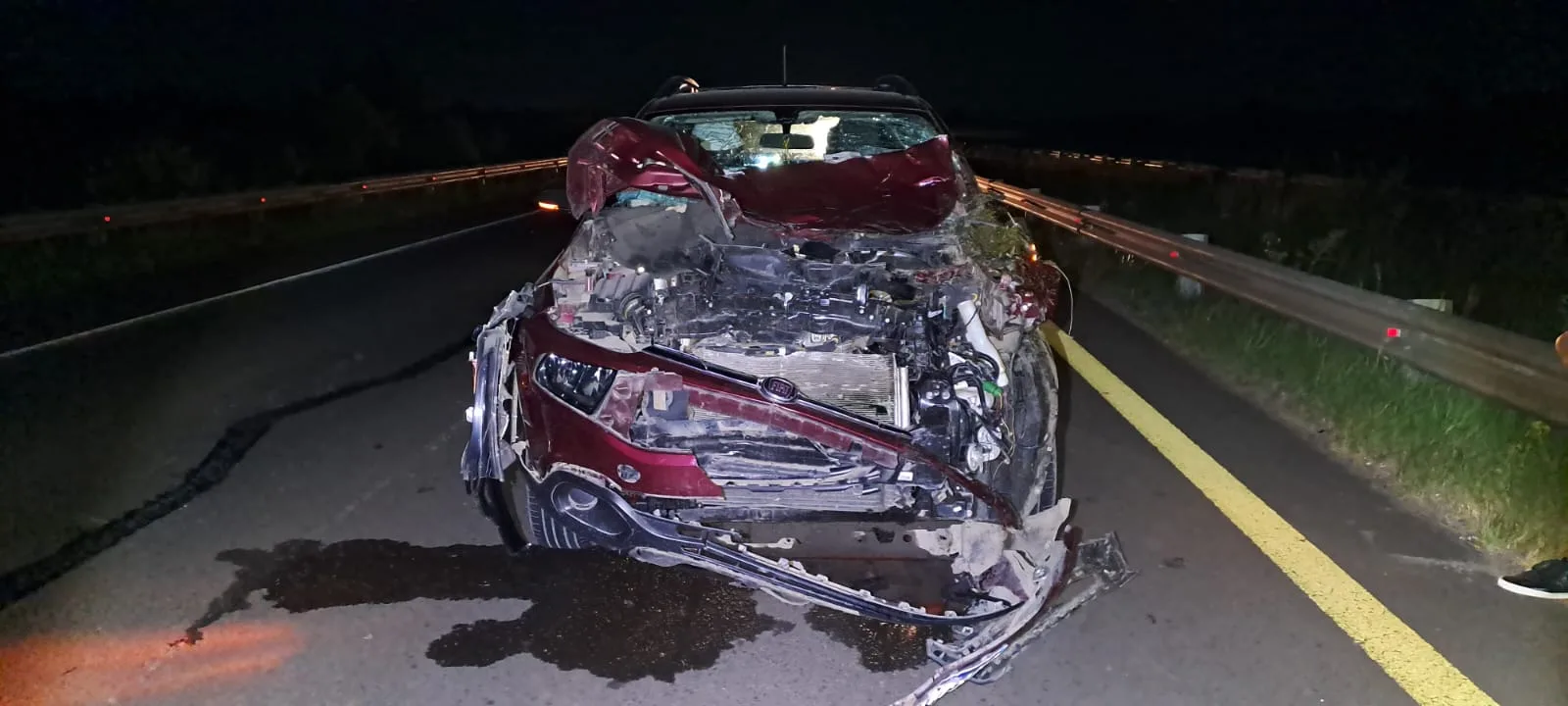 En jurisdicción de Comisaría Ubajay, intervino en un Accidente de Tránsito, ocurrido en la Autovía Gervasio Artigas km 216, lugar donde por causas que se tratan de establecer se produce la colisión entre una camioneta Marca Fiat, modelo Toro Freedom 2.0 , conducido por un masculino de 44 años de edad, acompañado de su esposa de 43 años de edad y sus hijas 12 y 10 años de edad, quien transitaba en su rodado en sentido Sur a Norte, e impactó con un animal vacuno, perdiendo el control del rodado culminado contra el guardarraíl, no hubo personas lesionadas, solo daños materiales. Se iniciaron Actuaciones Simples Policiales.