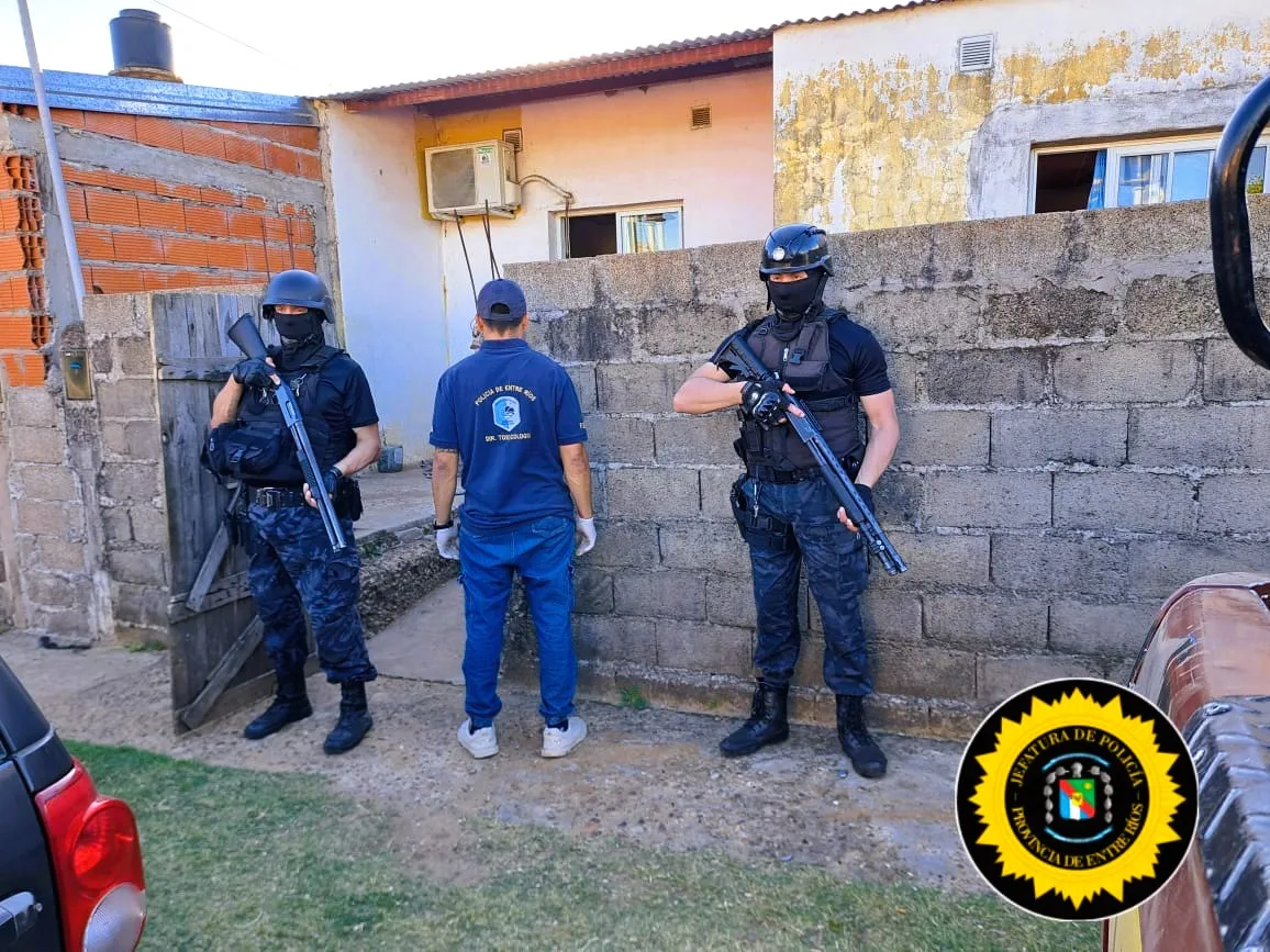 En otro de los procedimientos, llevado a cabo por los investigadores de la División Toxicología de Concordia y San Salvador, se incautó un trozo compacto de cocaína, un arma de fuego calibre 32 con tres cartuchos, un rifle de aire comprimido, una balanza digital, teléfonos móviles y 131.000 pesos en efectivo. Durante la ejecución del allanamiento, se identificaron a seis personas, de las cuales cuatro fueron detenidas por disposición judicial.