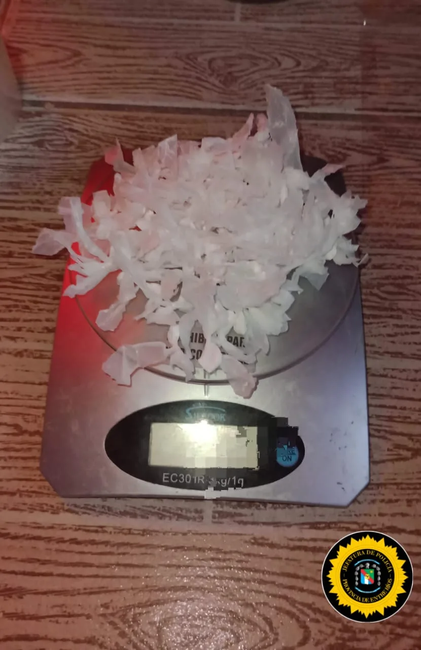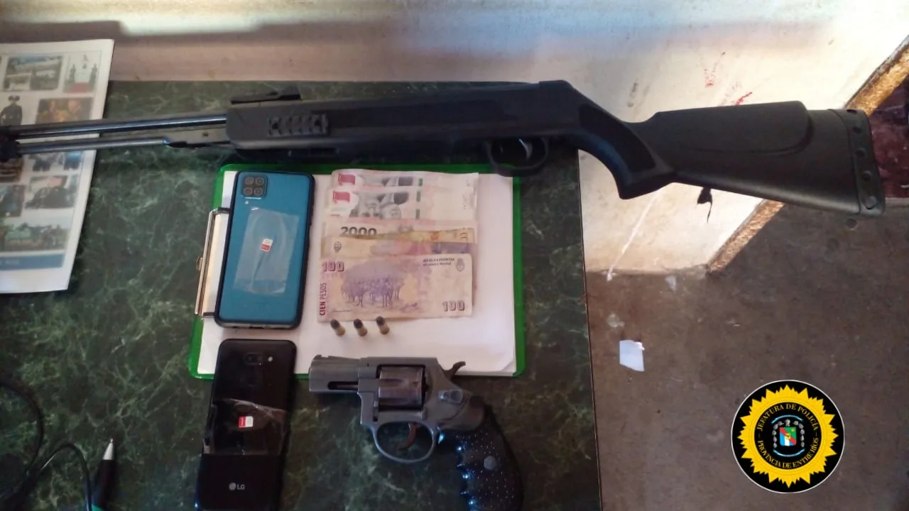 En otro de los procedimientos, llevado a cabo por los investigadores de la División Toxicología de Concordia y San Salvador, se incautó un trozo compacto de cocaína, un arma de fuego calibre 32 con tres cartuchos, un rifle de aire comprimido, una balanza digital, teléfonos móviles y 131.000 pesos en efectivo. Durante la ejecución del allanamiento, se identificaron a seis personas, de las cuales cuatro fueron detenidas por disposición judicial.