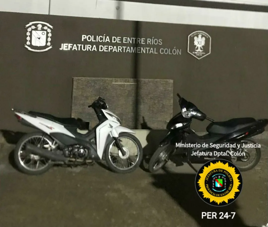 Gracias al análisis de cámaras de seguridad y un operativo de búsqueda, el personal policial logró interceptar a los sospechosos en inmediaciones de Ruta Provincial 135 y San Martín, donde se encontraban tres motocicletas marca Honda Wave 110 cc. Tras verificar los datos, se constató que dos de ellas tenían pedido de secuestro vigente, relacionados con robos recientes en Concepción del Uruguay.