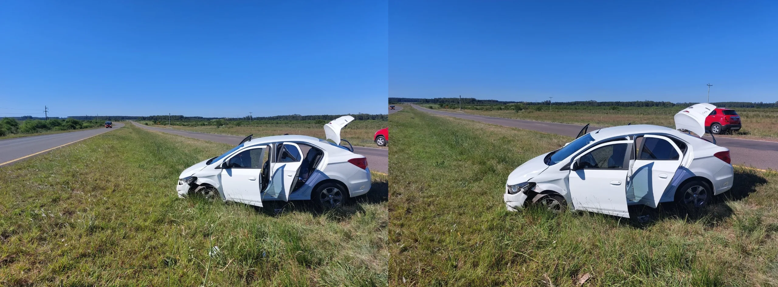 En el día de hoy siendo las 16 hs en la Autovia Gervasio Artigas km 316 y medio, se produjo un despiste de dos vehículos, el primero un Chevrolet tipo rural, modelo traker, conducido por un masculino (68) años, domiciliadodo en La Matanza, Buenos Aires, con destino a Misiones y otro vehículo Chevrolet prisma, conducido por un masculino (38), acompañado por su pareja (39) y su hijo (11), de Curuzu Cuantía, Corrientes. Según los participantes un camión con patente brasilera, posiblemente marca Scannia, color Rojo iba circulando con dirección Sur a Norte, por el carril izquierdo cuando el vehículo tipo rural se dispone a pasarlo seguido por el Prisma, momento en el cual el camión los encierra haciendo que ambos vehículos pierdan el control, frenando y despistando hacia el cantero central. A raíz de dicho siniestro No resultaron personas lesionadas. El camión continúo camino sin detenerse y solo hubo daños materiales. Presente en el lugar personal de Puesto Caminero Paso Cerrito.