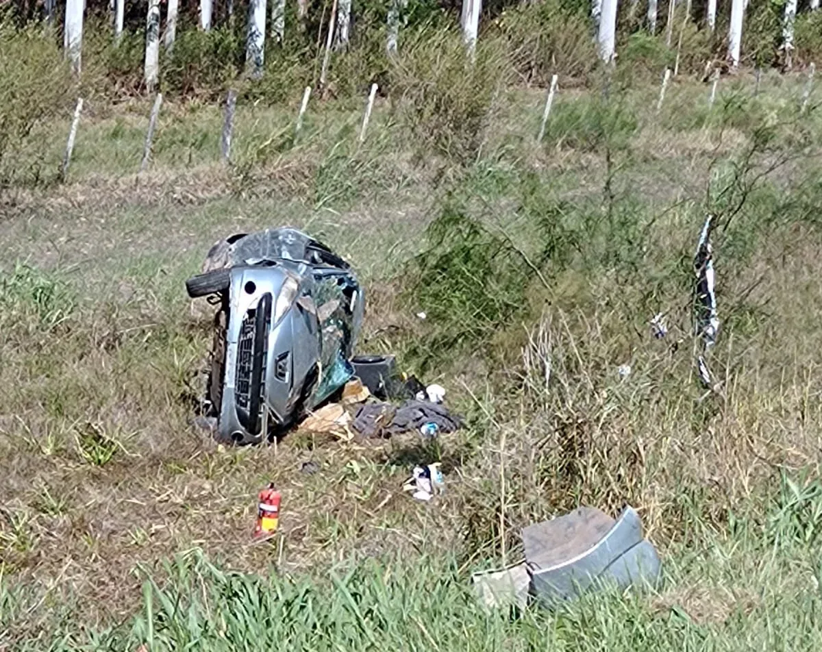 Según informaron fuentes policiales, el siniestro se registró alrededor de las 14 en el kilómetro 167,5 de la mencionada traza vial. Por causas que se tratan de establecer, un automóvil Peugeot 207 perdió el control mientras circulaba por la autovía y terminó despistando y volcando sobre la banquina.