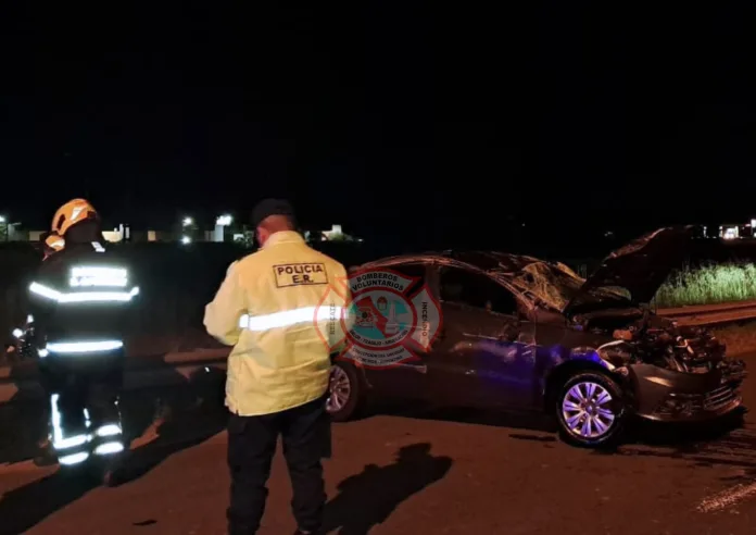 Siendo las 22:50 horas, personal policial y de emergencia fue alertado sobre un despiste y vuelco de un automóvil en el kilómetro 135 de la Autovía Nacional Artigas, con el conductor aparentemente atrapado en el interior.