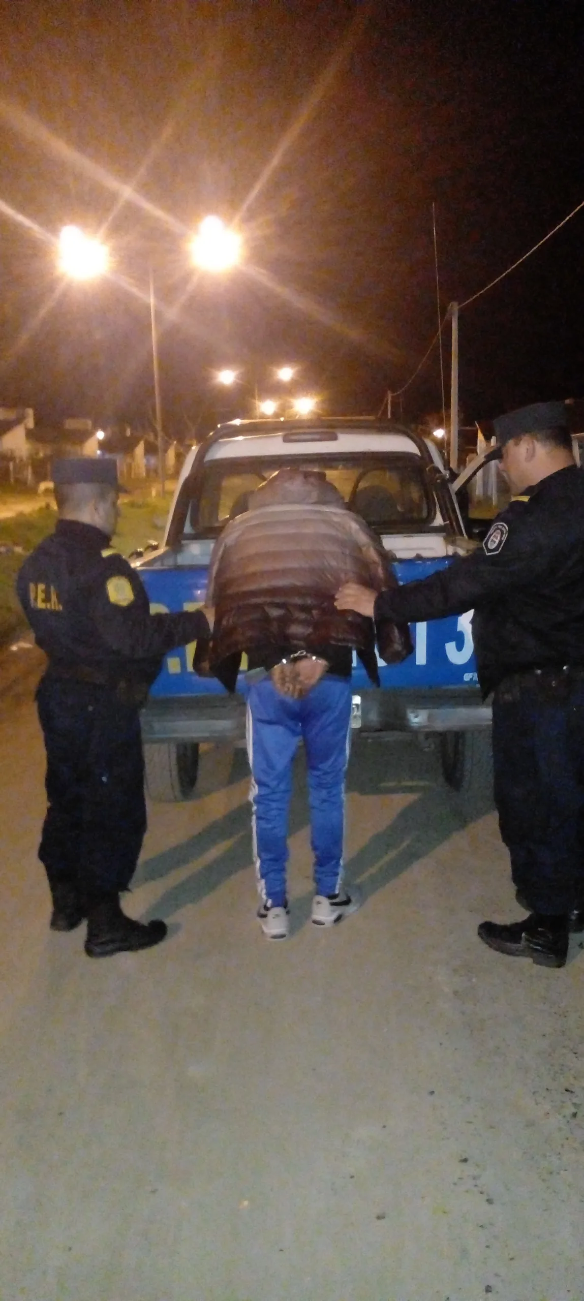 Luego de arduas tareas investigativas una comisión policial finalmente intercepto al sujeto de 25 años de edad, en un domicilio del Barrio Toto Irigoyen, quien fue alojado en esta Jefatura Departamental.-