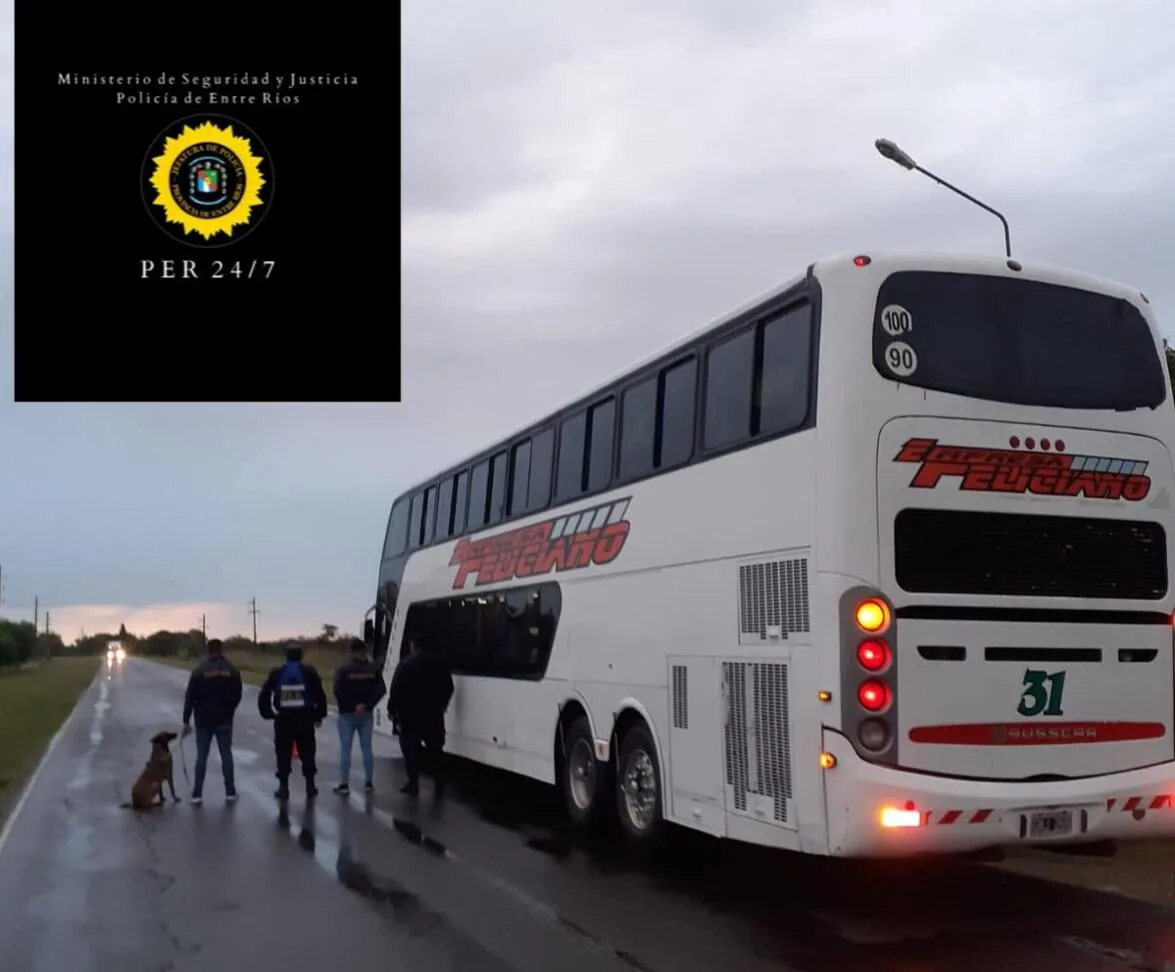 El hecho tuvo lugar alrededor de las 18 horas, en la ruta provincial N° 2, cerca del ingreso a la ciudad de Feliciano. Durante un control preventivo, el perro entrenado para la detección de estupefacientes alertó a los agentes sobre un asiento en particular, levantando sospechas de actividad ilícita.