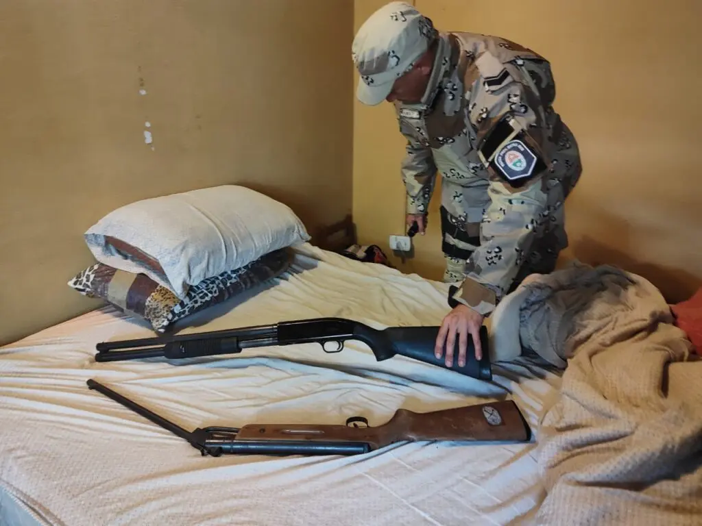 Así mismo debido a que el propietario del Campo poseía gran cantidad de Armas de fuego, se realizó una constatación y se corroboró la legítima tenencia de 14 armas, a través de comunicación directa con la División Repar (Registro Provincial de Armas) de la Dirección Criminalística, quienes chequearon las mencionadas armas con la ANAMAC (Agencia Nacional de Materiales Controlados).