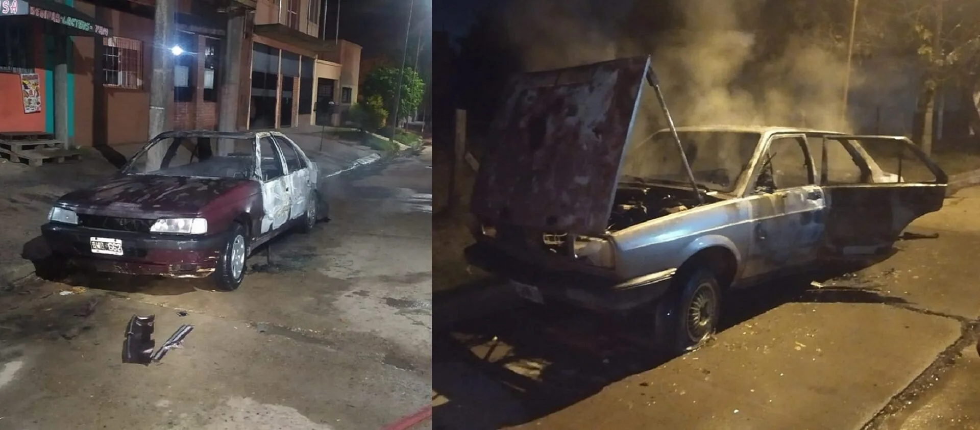 Ambos vehículos estacionados en la vía pública, con pérdidas totales, actuaciones a cargo de Personal Policial, para establecer las circunstancias que tomaron fuego.