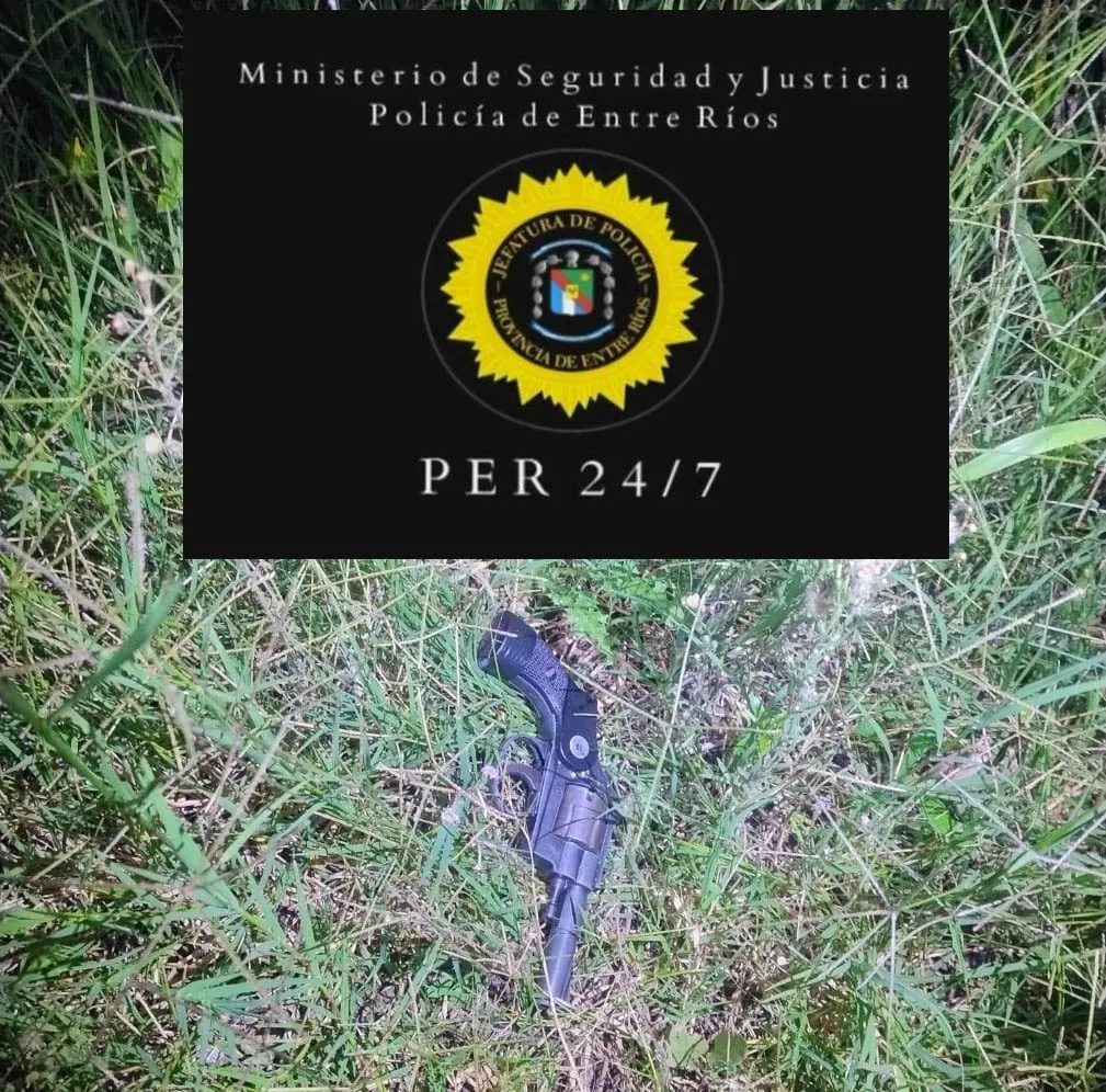 Posteriormente se constatan que el elemento arrojado sería un arma de fuego tipo revólver calibre.22 con cartuchería colocada.