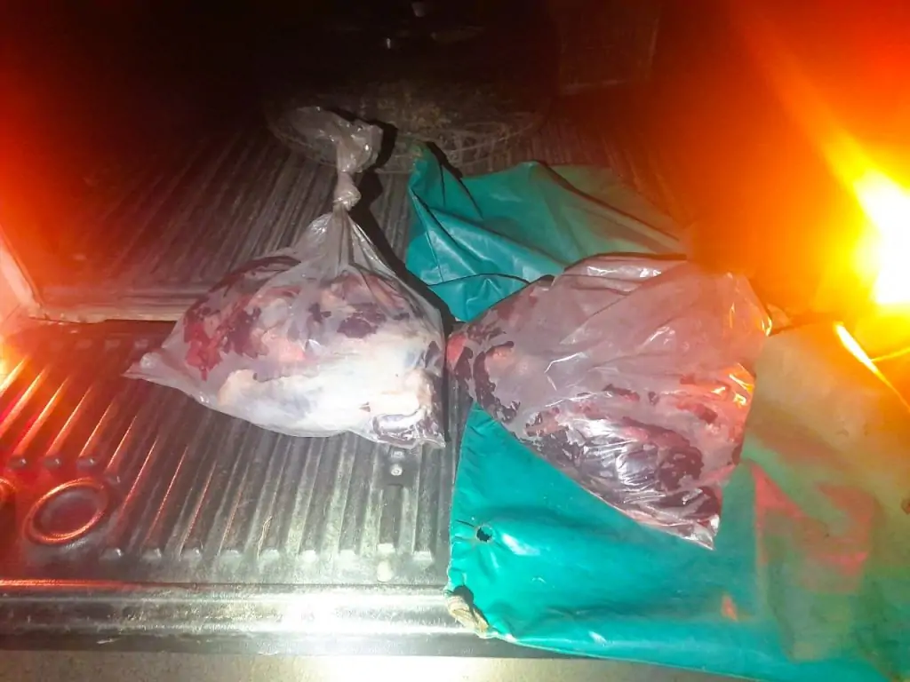 Durante la inspección, se escucharon ruidos provenientes de la maleza, lo que sugiere que una o más personas habrían huido del lugar, aunque no se logró identificarlas. El conductor del vehículo carecía de licencia de caza y del permiso del propietario del campo. No se encontraron armas de fuego en el rodado. Las autoridades procedieron al decomiso de la carne y se realizó el procedimiento sin secuestro del vehículo.