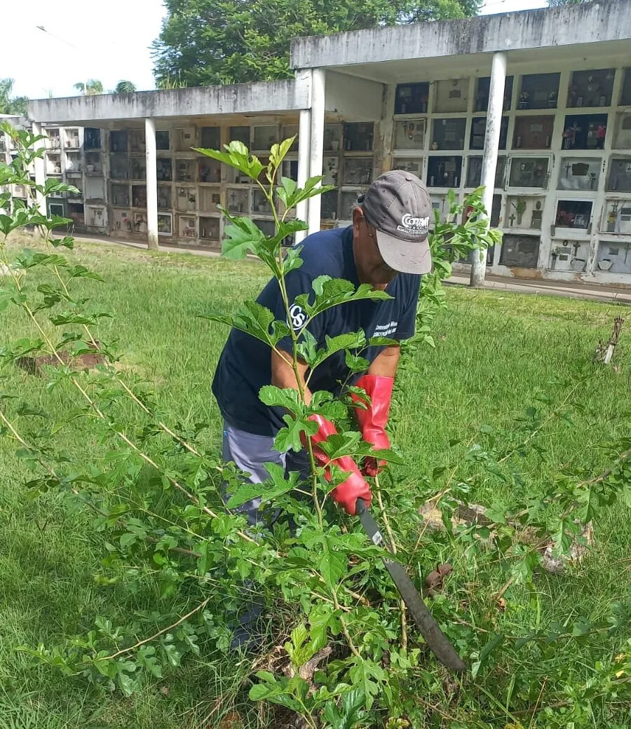 Para evitar esto, en el Cementerio Municipal se realizan intensas tareas de corte de pasto, se podan copas de los árboles para permitir que ingrese mayor luz solar, retiro de escombros y toda limpieza requerida.