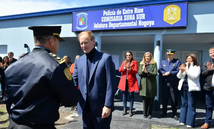 El gobernador Gustavo Bordet inauguró una nueva comisaría en la ciudad de Nogoyá. También entregó un patrullero, una ambulancia y anunció la construcción de 19 viviendas. “Es importante tomar los desafíos y continuarlos hasta el último día de gestión”, afirmó el mandatario.