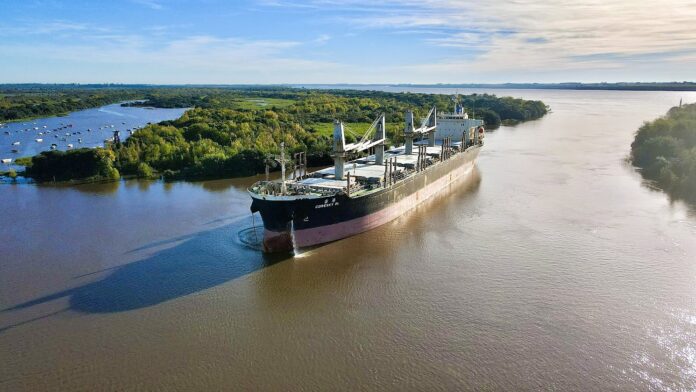 Hace apenas 10 días zarpó African Pelican que operó en Concepción del Uruguay e Ibicuy, llevando sus bodegas completas hacia los mercados indios que compran productos forestales de la región, y que utilizan los puertos entrerrianos como salida al mundo.