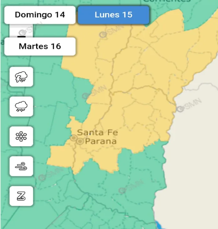El área será afectada por lluvias y tormentas de variada intensidad, algunas localmente fuertes. Se espera que las tormentas estén acompañadas principalmente por abundante caída de agua en cortos períodos, además de actividad eléctrica, ráfagas y ocasional caída de granizo.