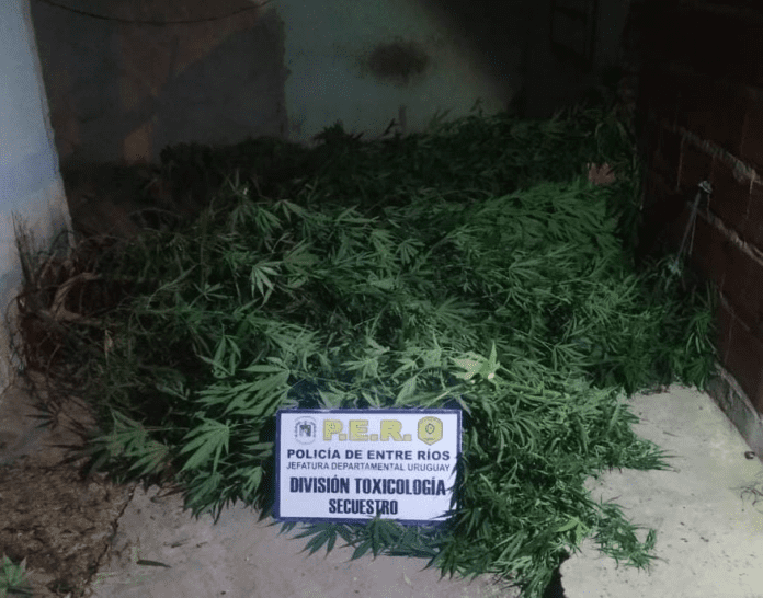 Además efectivos policiales lograron el hallazgo en el patio de la vivienda de 27 plantas que por su morfología y características intrínsecas se tratarían de la especie cannabis sativa, dando intervención a personal de la Delegación Toxicología, quienes realizan los correspondientes test orientativos, dando como resultado positivo para Cannabis Sativa, por lo que se pone en conocimiento a la fiscalía en turno, ordenando el secuestro de la totalidad de las plantas las cuales van desde los 56 cm, hasta 2,50 Mts, de altura.