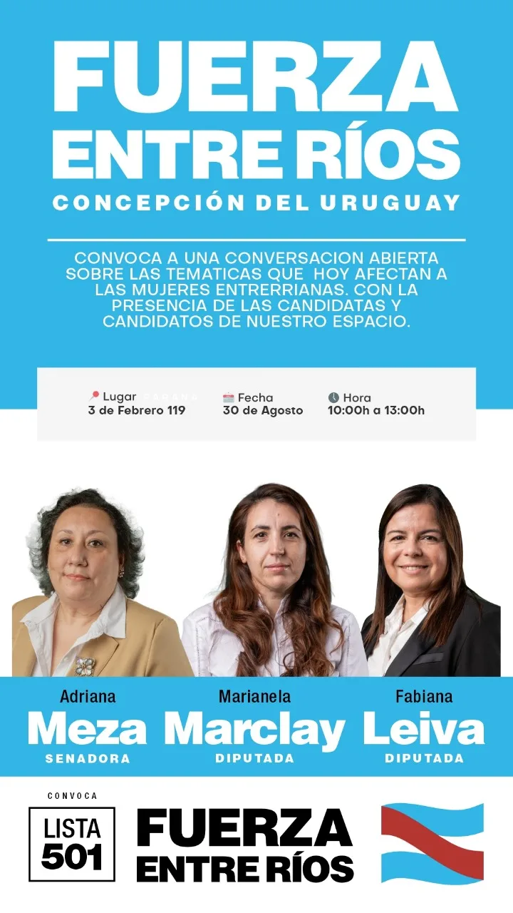 Este sábado 30 a las 10.00 horas la lista Fuerza Entre Ríos invita a todas las mujeres de Concepción del Uruguay y la región a participar del Encuentro.