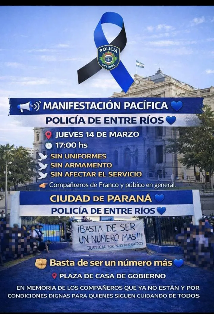 Las manifestaciones se iniciaron en Rosario y luego se replicaron en la ciudad de Santa Fe, concentrándose especialmente frente a la Casa de Gobierno. Allí, varios patrulleros se apostaron en señal de protesta, mientras los familiares denunciaban precariedad en las condiciones de trabajo, falta de cuidados médicos adecuados, problemas con uniformes y escasez de recursos para patrullaje.