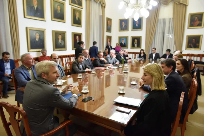 La mesa de diálogo también contó con la presencia del ministro de Hacienda y Finanzas, Julio Panceri, los directores de Vialidad Provincial (DPV), Exequiel Donda, y del Instituto Autárquico de Planeamiento y Vivienda (IAPV), Manuel Schönhals, y el coordinador de la Unidad Ejecutora Provincial (UEP), Gustavo Cusinato; entre otros funcionarios.