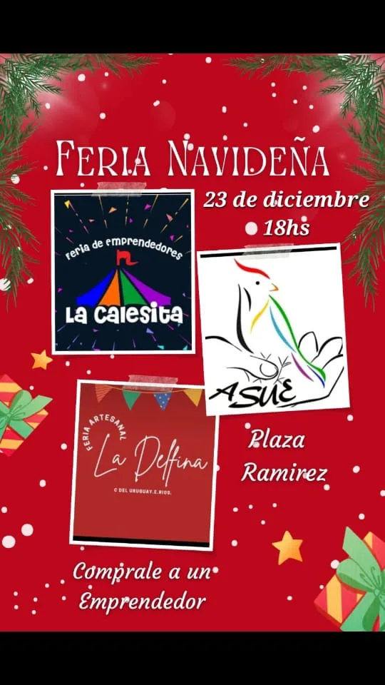 Este viernes 23 de diciembre, a partir de las 18 hs. La Ferias de artesanos, manualitas y emprendedores llevarán a cabo sobre Plaza Ramírez la tradicional feria navideña.