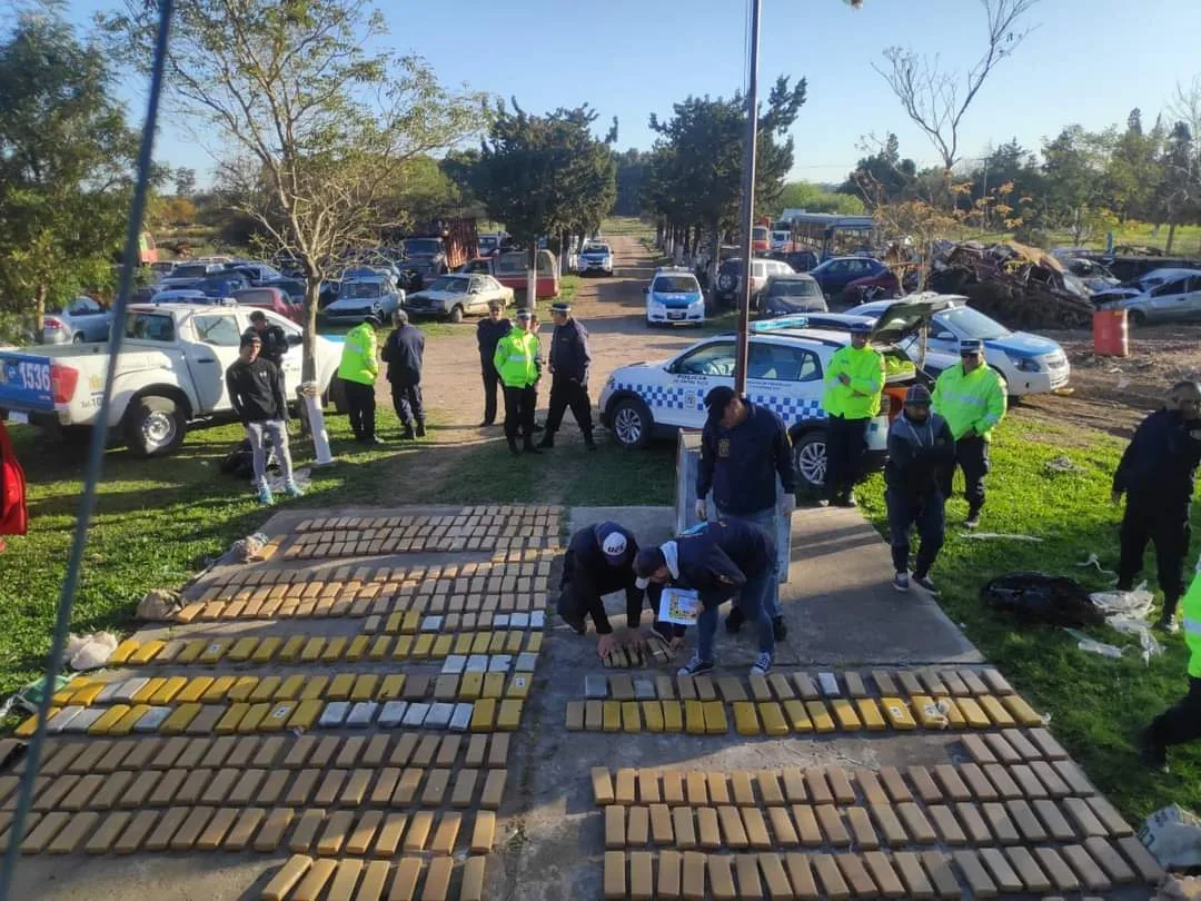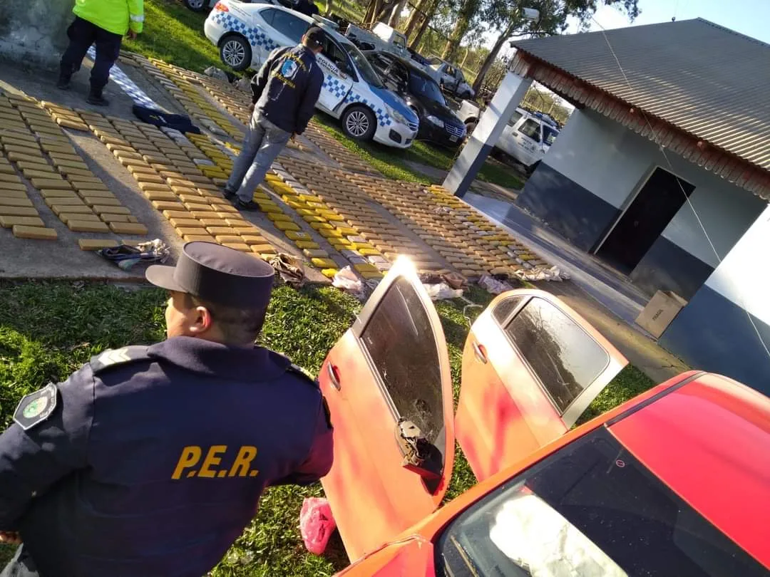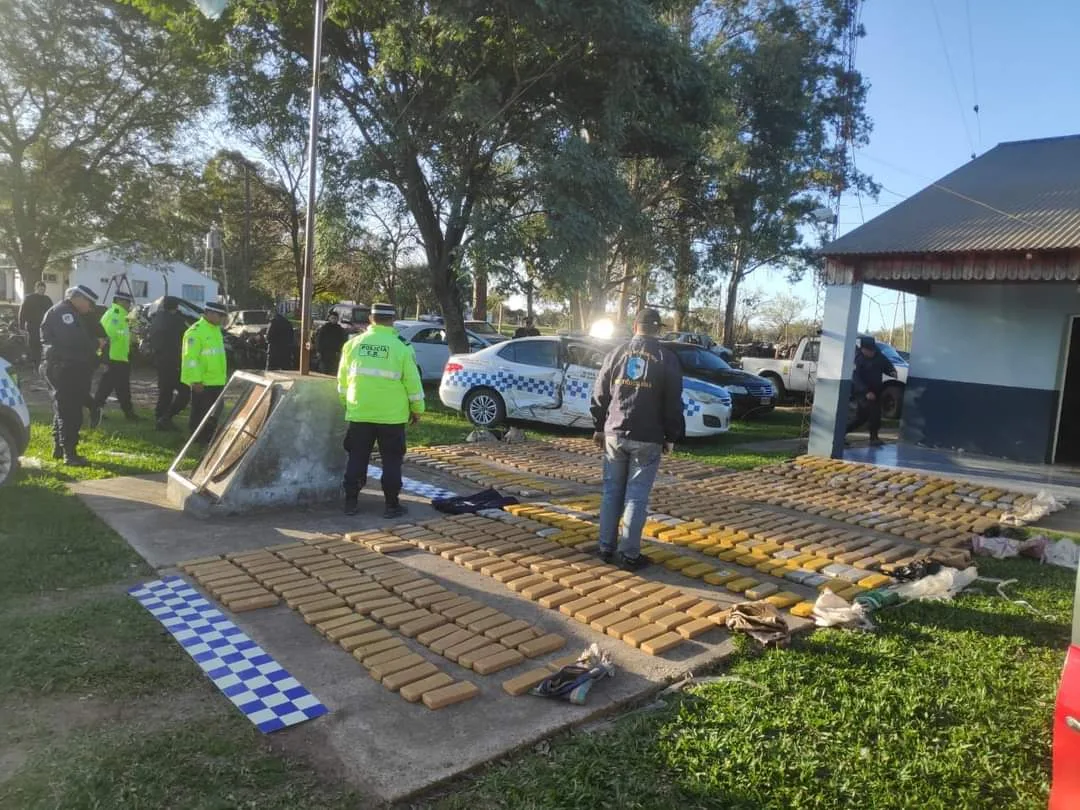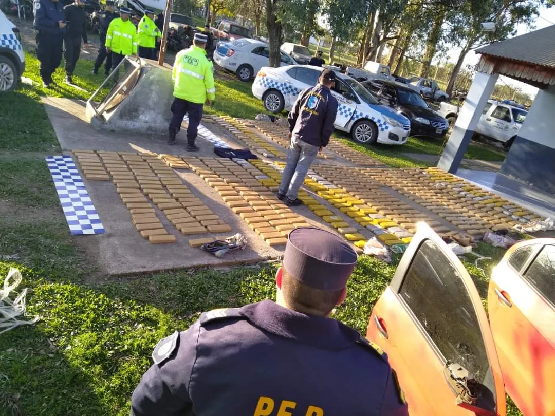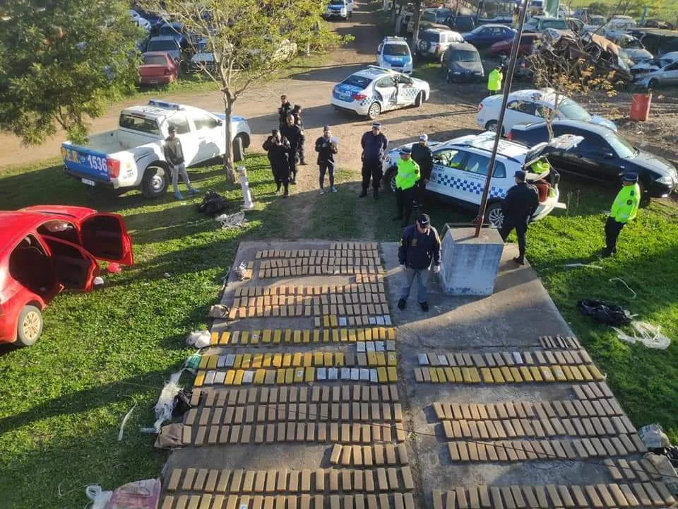 Pasado el mediodia de hoy personal policial perteneciente a la Direccion de Prevención y Seguridad Vial destacado en el puesto Caminero Paso Cerrito toma conocimiento por parte de Comisaría San Jaime de la Frontera que un automóvil marca Volkswagen modelo gol trend juntamente con otro rodado, Chevrolet modelo Corsa habían eludido al personal del puesto Caminero Tuna de la Policia de la provincia de Corrientes. En tal sentido habiendo ingresado a la provincia de Entre Ríos por paso tuna el Volkswagen, se intenta detener su marcha en la intersección de ruta provincial 1 donde evade los controles policiales alli dispuestos emprendiendo la fuga por ruta provincial 1 en sentido a la localidad de Chajari tras lo cual se inicia un seguimiento controlado del rodado hasta que su marcha es detenida en el puente sobre el arroyo Tigua por la unidad móvil 1261 del Puesto Caminero Paso Cerrito, movil policial que es colisionado por el Volkswagen Gol siendo inmediatamente reducido y detenido el conductor en el lugar resultando ser un hombre mayor de edad domiciliado en la ciudad de Concordia. Una vez asegurado el rodado y avanzado el control primitivo del mismo se observa que se halla completamente cargado con bultos de los cuales caen envoltorios rectangulares amarronados comunmente denominados ladrillos. Ante esto habiéndose dado intervencion a la Division Toxicología de la jefatura departamental Federación y pleno conocimiento a la justicia Federal de la ciudad de Concordia se lleva adelante la requisa de urgencia en virtud de lo normado en el articulo 230 bis del código de forma en lo penal de la Nacion Argentina hallandose y secuestrandose la cantidad de 605 ladrillos que al analisis de campo arroja como positivo cannabis sativa con un peso total de 429,400 kilogramos. Ademas en el lugar se procede con el secuestro del rodado, equipo de telefonía celular y demas efectos relacionados con la causa quedando el encartado incomunicado detenido a disposición de la justicia Federal citada.