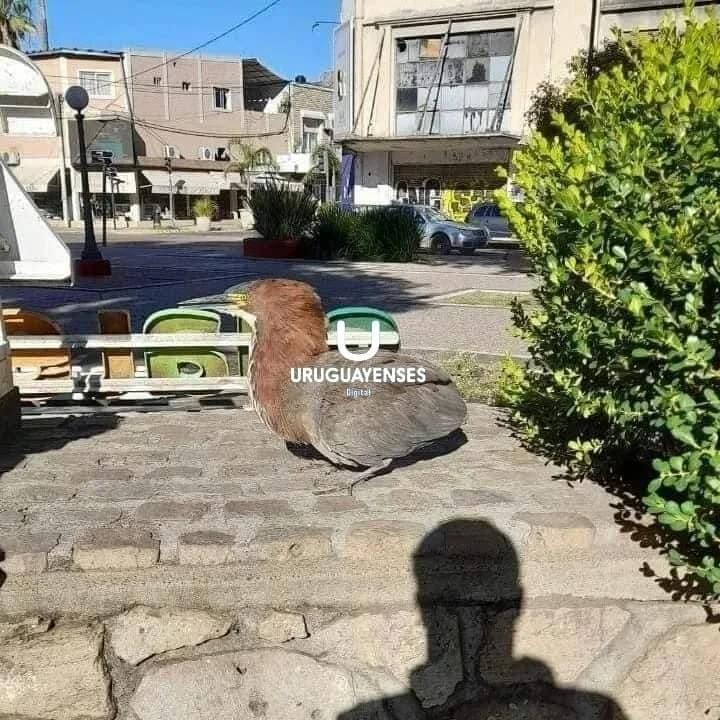 El ave estaba posada al sol en la plaza San Martin de la ciudad de Gualeguaychú en Entre Ríos, la situación sorprendió a los vecinos quienes tomaron fotos de las distintas poses del animal.Se trata de un avetigre colorada u hocó colorado es una especie de ave pelecaniforme de la familia Ardeidae ampliamente distribuida por toda la región neotropical. Se le encuentra desde México hasta Uruguay, por toda la América Central y la mayor parte de Sudamérica.