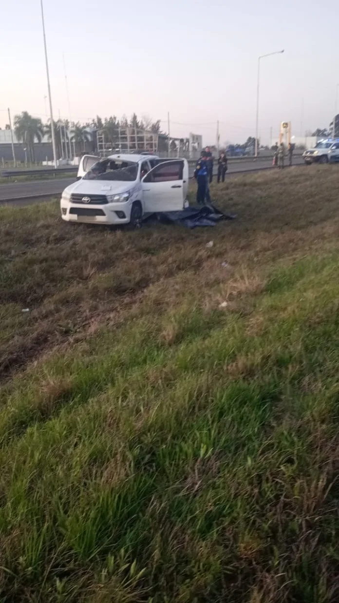 Este roce habría desestabilizado la camioneta, que terminó cruzándose frente al camión, provocando una segunda colisión. Como consecuencia del impacto, la camioneta volcó en el cantero central de la autovía.