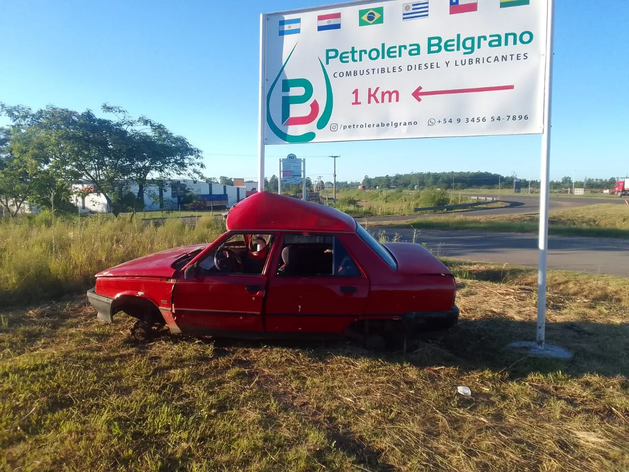 En la mañana, siendo las 06:00 hs, personal policial interviene en siniestro vial ocurrido en Colectora Este (Néstor Kirchner) de Autovía Artigas aprox. km 329, con su intersección de Av. Belgrano de la ciudad de Chajarí, por un despiste de un automóvil, siendo el mismo marca Renault, modelo 9, color rojo, el cual se hallaba sin ocupantes, el que por causas que se tratan de establecer, al circular en sentido Norte-Sur sobre Colectora e ingresar a la ciudad por Avenida Belgrano, pierde el control impactando con su lateral derecho contra una columna de acero perteneciente a carteleria publicitaria. En el lugar no se registran personas lesionadas y no se localiza ocupantes del mismo, ya que el rodado se encontraba abandonado. De averiguaciones practicadas se pudo establecer que el siniestro vial habría ocurrido alrededor de las 23:00 horas de la víspera y que su conductor se habría retirado del lugar por su propios medios. Se comisiona grua y se procede al trasladado del vehículo a Comisaria N° 17 Mandisovi.-