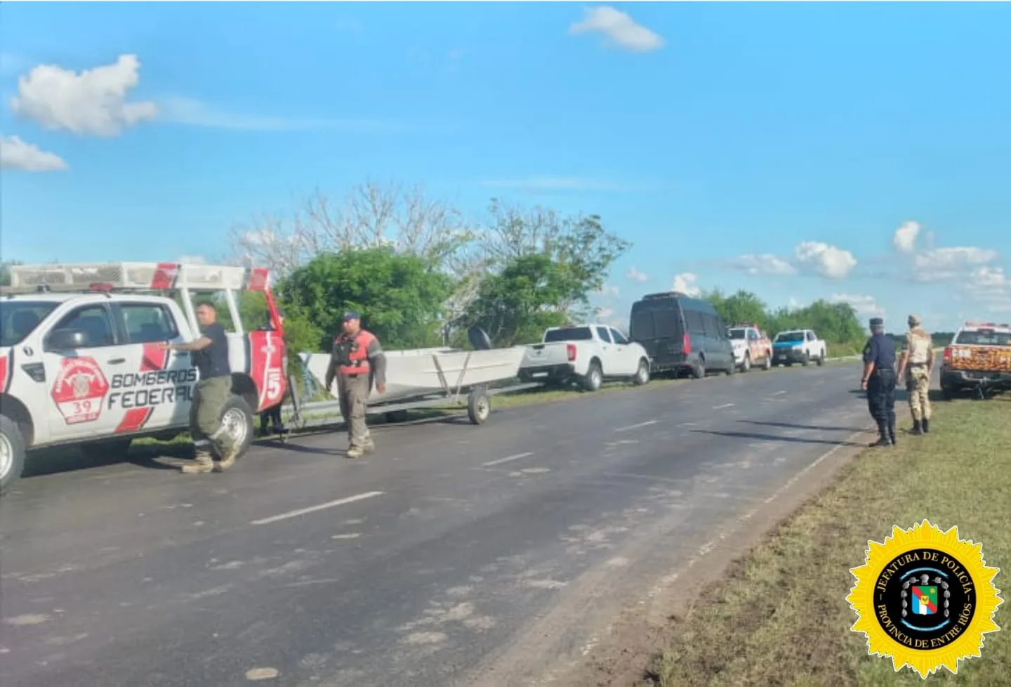 Desde el inicio del operativo de búsqueda y rescate trabajaron en el lugar personal de Comisaría Chañar, Cuerpo y Guardia de la Jefatura Departamental, Buzos Tácticos de la División Compañía de Operaciones Especiales (C.O.E.), Bomberos Forestales y de Emergencia Ambiental de la Dirección General de Prevención de Delitos Rurales, además del Cuerpo de Bomberos Voluntarios de Federal y una dotación de buzos tácticos de Bomberos Voluntarios de Chajarí.