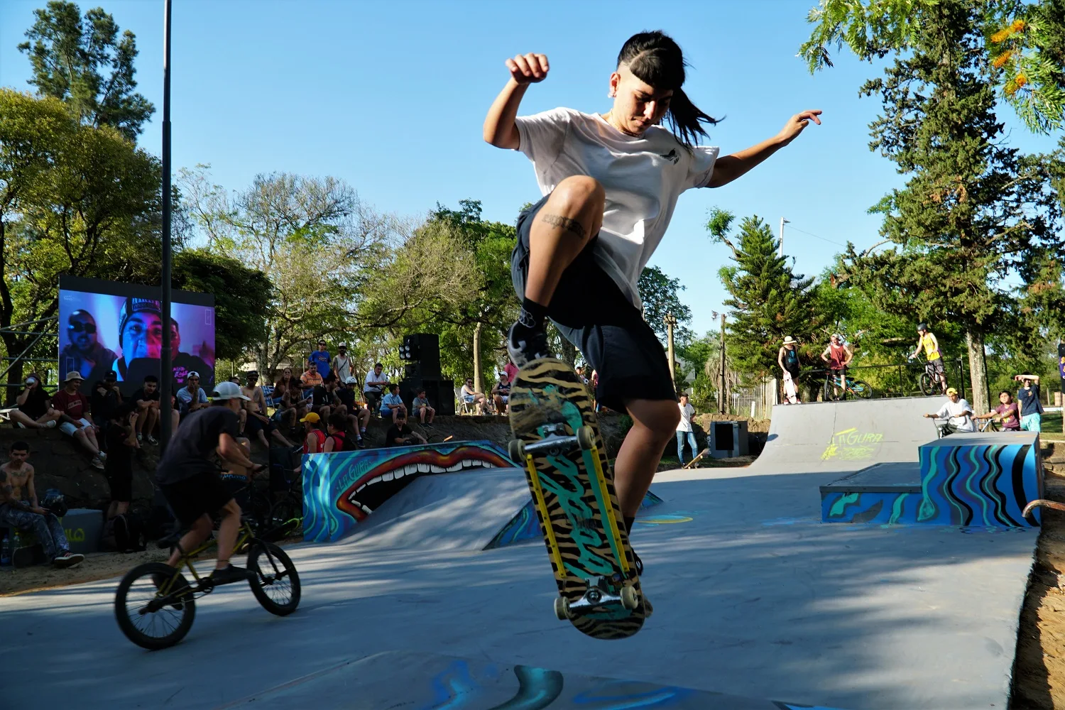 El sábado por la tarde se reunió una gran cantidad de jóvenes y familias para compartir música y arte en vivo, y demostraciones de skate y de BMX con participantes que llegaron de la ciudad y de distintas localidades del Departamento Colón, pero también de Concepción del Uruguay, Concordia, Gualeguaychú, como así también de Zárate, Rosario y Paysandú, Uruguay.