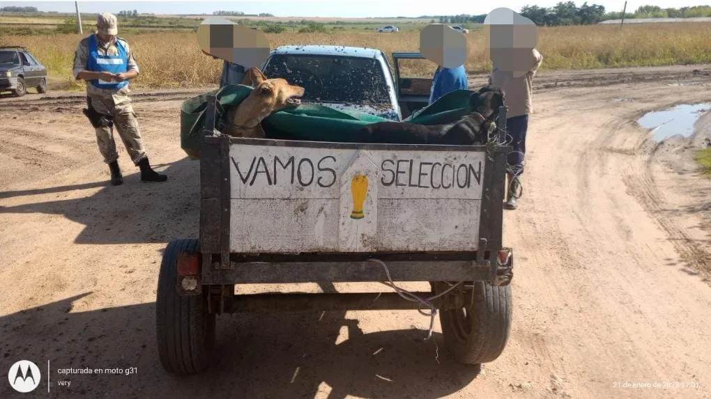 En la tarde de este sábado en circunstancias que personal de la Dirección Prevención Delitos Rurales Brigada Gualeguaychú realizaba Operativo en calles 9 y 6 de Colonia El Potrero, detienen la marcha de un automóvil marca Fiat Duna el cuál llevaba enganchado un tráiler de madera, ante el control los Uniformados constatan que las tres personas que se conducían en dicho vehículo, estaban regresando de realizar la actividad ilegal de caza furtiva, debido a que trasladaban faenadas especies Autóctonas protegidas por la Ley Provincial de Caza, cómo Ñandú y Martineta; llevando así mismo Ocho canes en el tráiler de fabricación casera; dichas personas fueron identificadas e infraccionadas debido a que carecían de autorización de dueños de campo, no pudiendo justificar su presencia en esta zona rural, aparte de ejercer una actividad ilegal, con perros y haber matado especies protegidas.