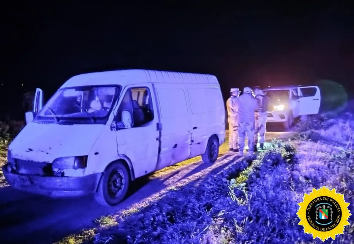 En el procedimiento, los agentes lograron interceptar una camioneta utilitaria Ford Transit blanca saliendo del establecimiento rural. En el interior del vehículo se trasladaban dos hombres mayores de edad, de 20 y 52 años, ambos oriundos de Gualeguaychú.