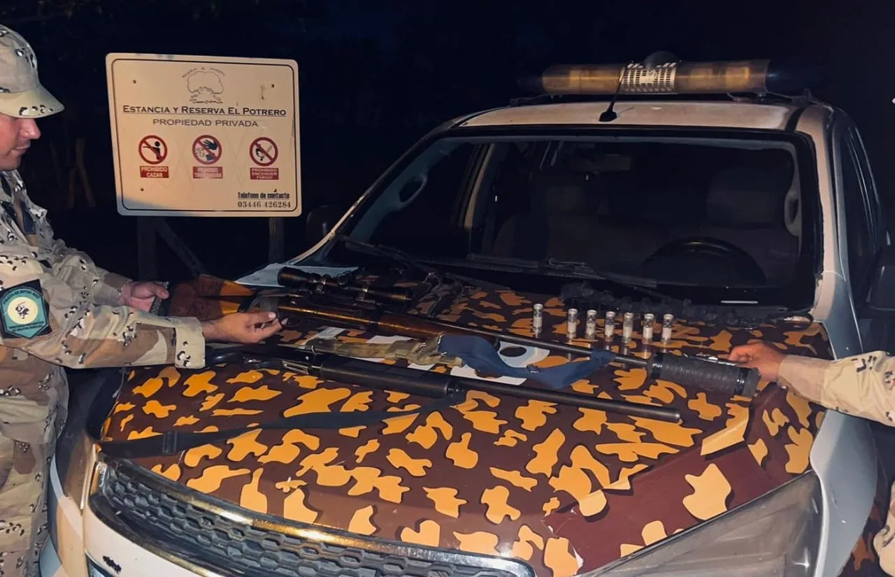 En horas de la madrugada de este Lunes, personal de la Brigada de Prevención de Delitos Rurales del Dpto. Gualeguaychú, en conjunto con el personal de guarda fauna de la Estancia El Potrero, interceptaron en el interior de la Reserva Natural, a un ciudadano que estaba realizando la caza de forma furtiva y tenía en su poder Un Fusil calibre .308 con silenciador (elemento prohibido por Ley) y una Escopeta Calibre .12, constatando que de la primer arma el infractor no poseía documentación respaldatoria y además poseía adosado un elemento prohibido (silenciador) por lo que con conocimiento de la fiscalía en turno se iniciaron las actuaciones correspondientes procediendo al secuestro del arma de fuego.