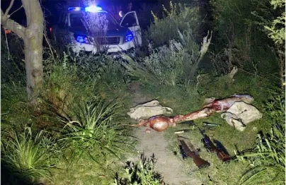Personal de la Jefatura Departamental Feliciano, realizando recorridas preventivas en zona de la reserva natural protegida “Don Sebastián”, en la madrugada de este sábado, localiza en un camino interno a unos 1500 metros del casco de la estancia; a dos hombres y una mujer ocultos entre la maleza, quienes estaban faenando un ciervo axis y portaban dos carabinas con mira telescópica, linternas y cuchillos.