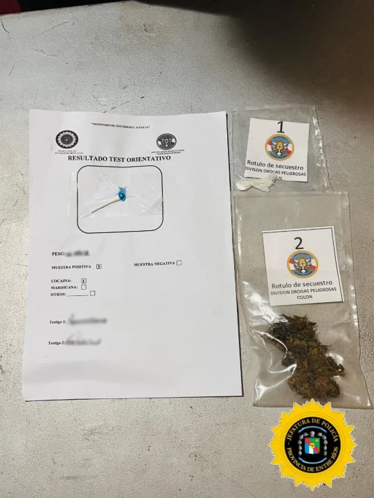 En el lugar intervino personal de la División Drogas Peligrosas, que realizó los tests correspondientes, confirmando que se trataba de cocaína y cannabis sativa.