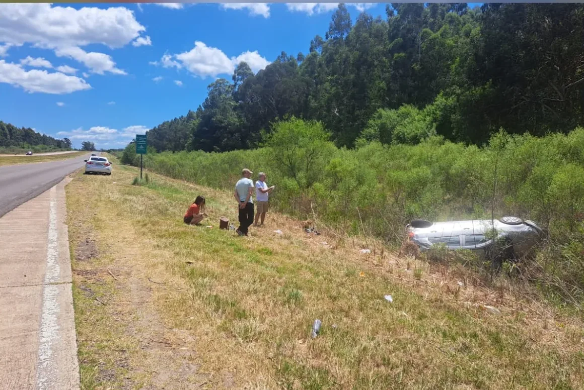 Según informó la policía, un automóvil Gol Trend, conducido por un hombre proveniente de Capital Federal, perdió el control tras morder la banquina del margen oeste de la carretera. El vehículo volcó posteriormente sobre la calzada, sin que se registraran personas lesionadas.