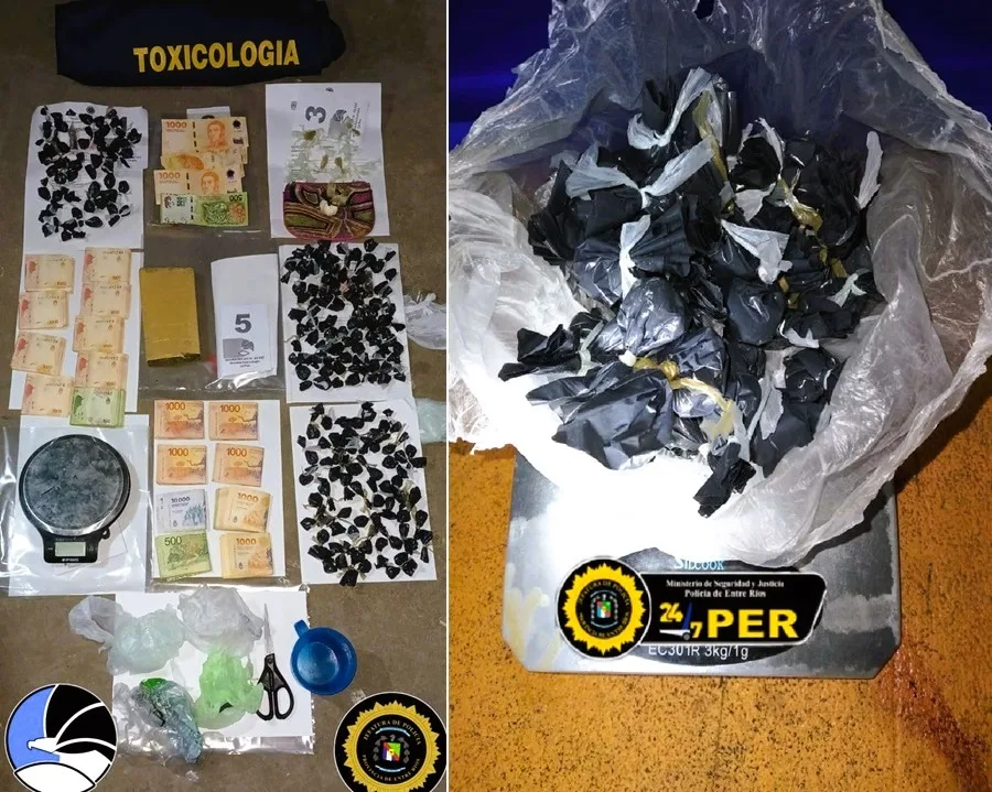 En horas de la tarde-noche de ayer, personal de la División Toxicología de la Jefatura Departamental La Paz, junto a su Grupo Especial, llevó a cabo dos medidas judiciales simultáneas en la ciudad de Santa Elena. Estas acciones contaron con la colaboración de la División Toxicología y el Grupo Especial de la Jefatura Departamental Feliciano, bajo órdenes del Juzgado de Garantías y Transición de La Paz, a cargo del Dr. Walter Carballo, y con intervención del Ministerio Público Fiscal liderado por el Dr. Barbosa Facundo. El objetivo era demostrar la supuesta comercialización de sustancias estupefacientes al menudeo, en violación de la Ley Provincial N° 10.566.