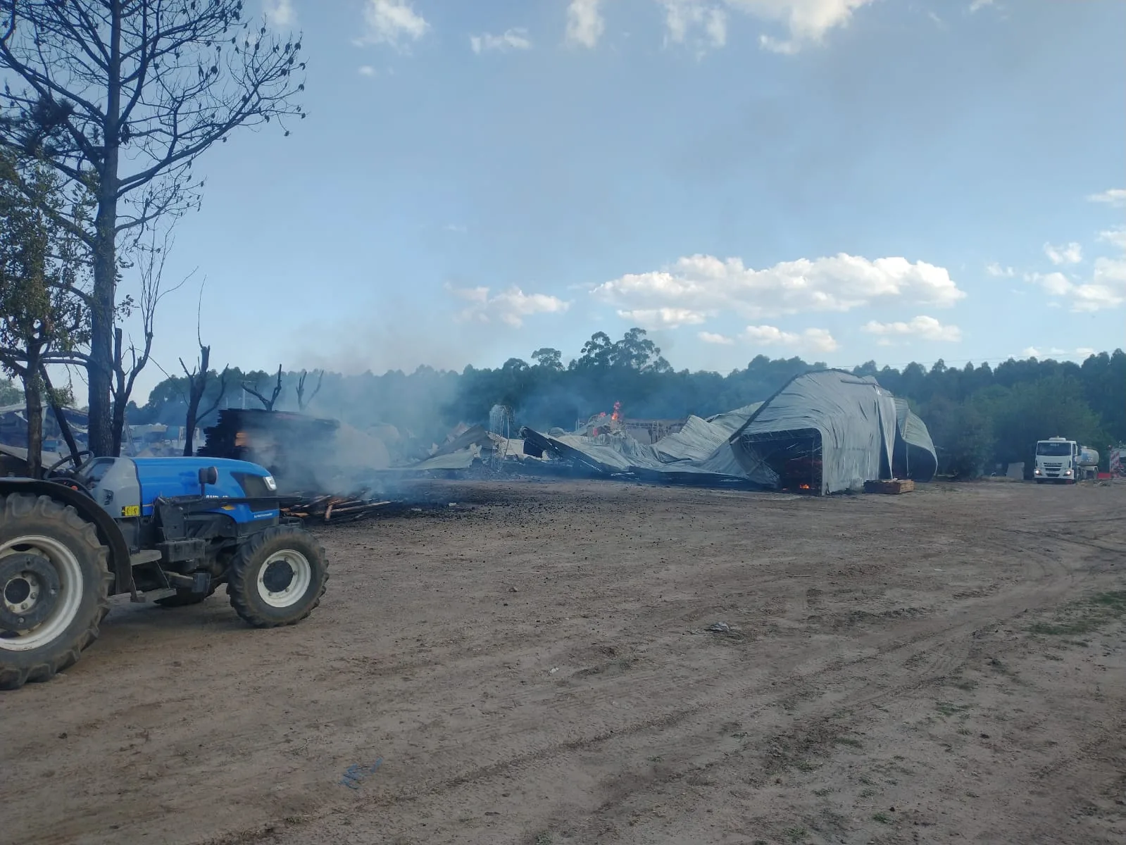 En el lugar prpiedad de familia Braghini, por razones que se tratarán de establecer, tomó fuego un galpón, parte de una camioneta, un autoelevador y otros elementos.