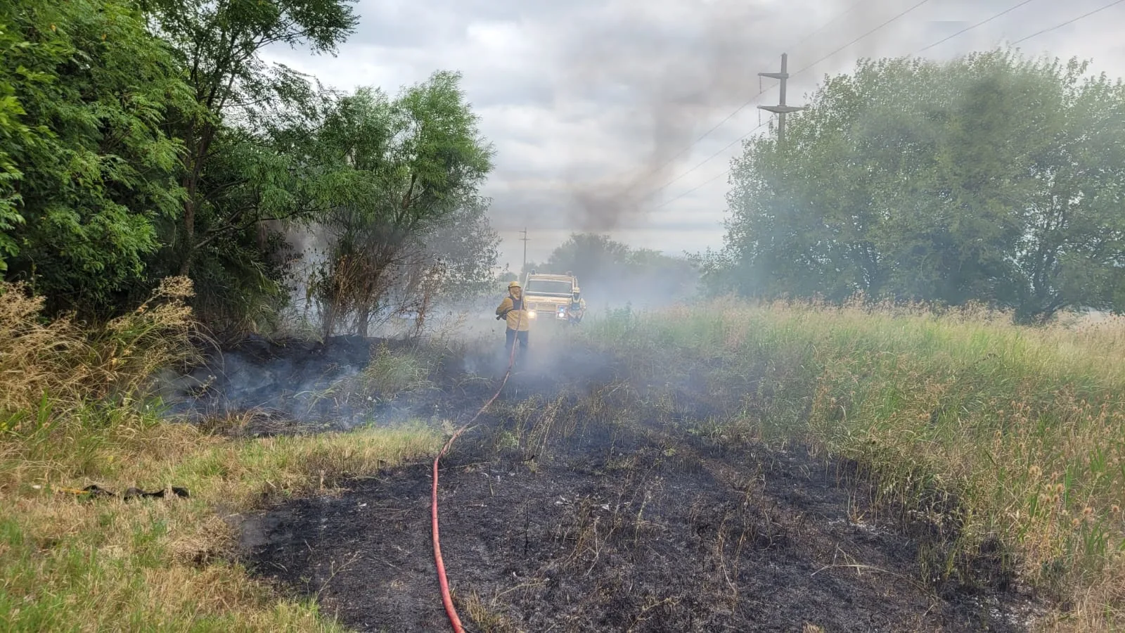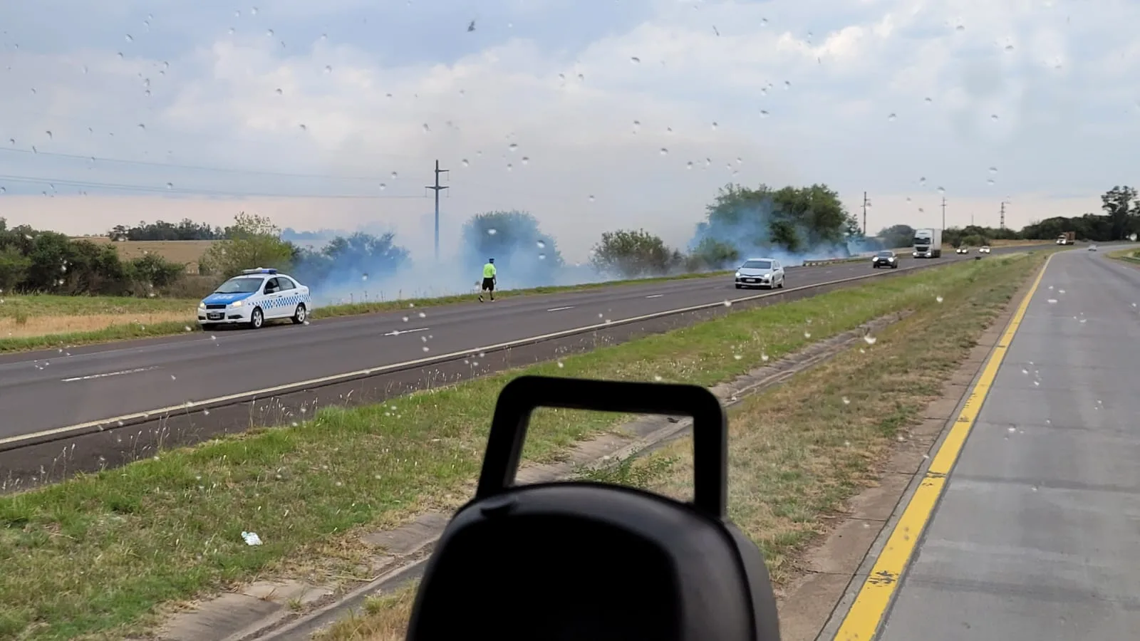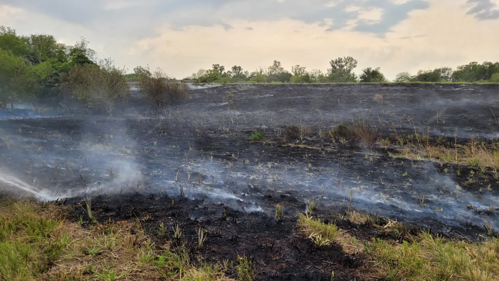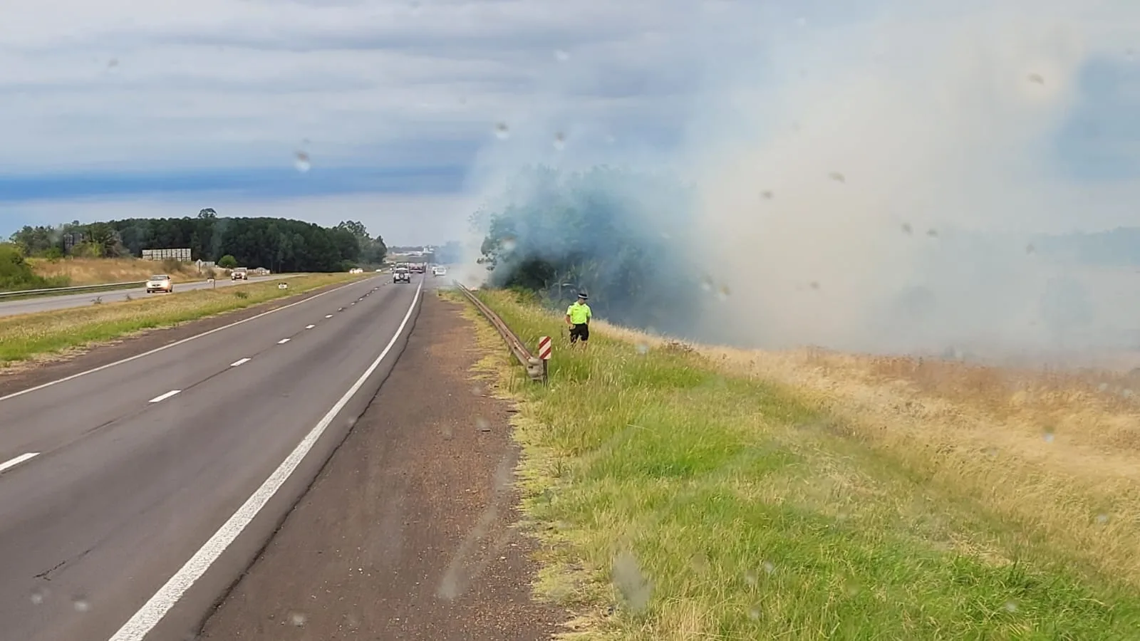 Esta mañana a las 11:30 horas aproximadamente somos alertados por varios automovilistas sobre un incendio de pastizales en la Autovía Nacional Ruta N°14 en el kilómetro 136.