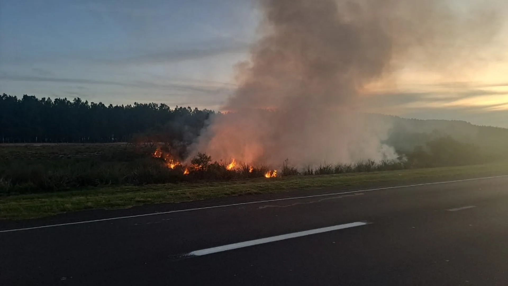 En horas de la tarde de este viernes, personal de comisaria Médanos, debió hacerse presente en ruta Nacional N.º 12 en el km 198 donde se produjo un incendió de grandes proporciones en la banquina de la ruta,