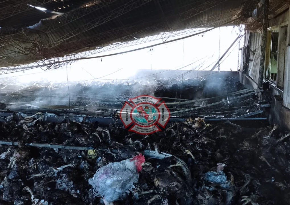 Las llamas avanzaron con rapidez y provocaron el colapso total del techo del galpón, generando pérdidas materiales significativas y la muerte de una gran cantidad de gallinas.