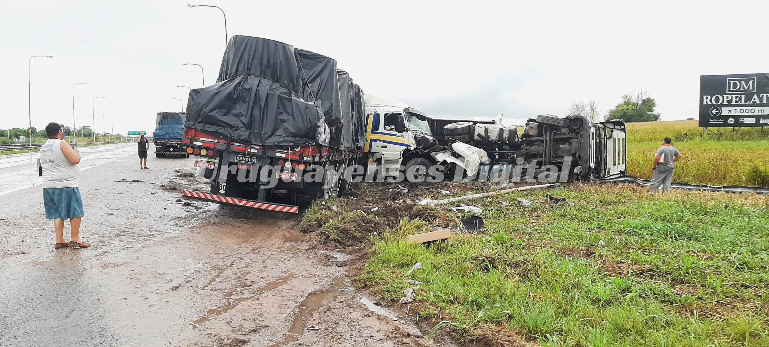 Los vehículos involucrados fueron un Volvo con semirremolque transportando bobinas de papel hacia Buenos Aires, conducido por un hombre de 48 años de nacionalidad brasileña, y un Scania con semirremolque vacío, manejado por un conductor paraguayo también de 48 años. Ambos circulaban en sentido norte-sur cuando el Scania perdió estabilidad durante la maniobra de adelantamiento y colisionó contra el otro camión.