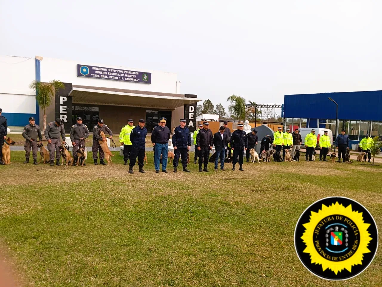 Hoy comenzó el curso titulado “Curso para Guías y Canes en Búsqueda de Estupefacientes” en la Escuela de Agentes de Villaguay, dependiente de la Dirección Institutos Policiales. Esta capacitación está dirigida al personal policial de la provincia, incluyendo a integrantes de la Dirección de Prevención y Seguridad Vial y la Dirección de Toxicología, así como a miembros del Servicio Penitenciario.
